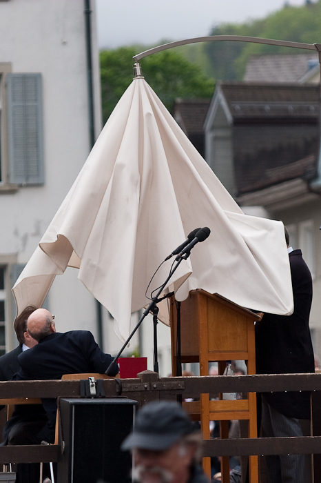 Heute fand in Glarus die alljährliche Landsgemeinde statt. Nicht weniger als rekordverdächtige 22 Traktanden wurden behandelt. Nicht dass das schon genug wäre, nein, es goss auch wie aus Kübeln. Wer wasserfest angezogen war, war klar im Vorteil. Und ich musste feststellen, weshalb meine Windjacke Windjacke heisst…